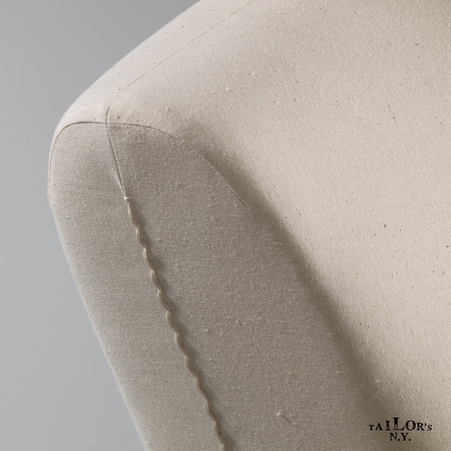 Ogni busto viene realizzato con cura artigianale: la struttura in vetroresina viene prima lievemente imbottita e in seguito rivestita in tessuto con cuciture a mano. Vedi come nasce un busto Tailor's NY.